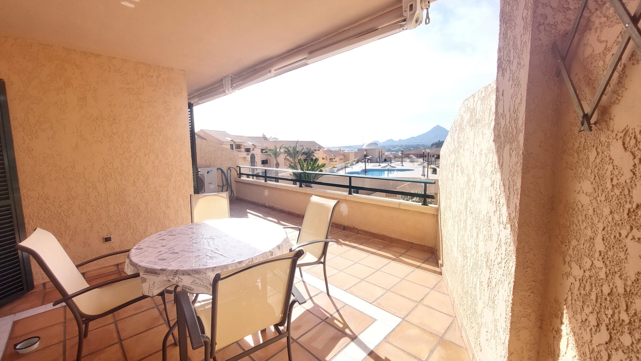 Precioso apartamento con maravillosa terraza, en 1ª planta con fantasticas vistas a la montañana y la piscina de la urbanizacion Barrera 2 en Mascarat.