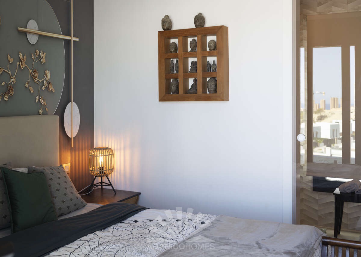 Mediante escalera de marmol se sube a la primera planta donde se encucentra el dormitorio principal, con baño en suite y una magnifica terraza solar.