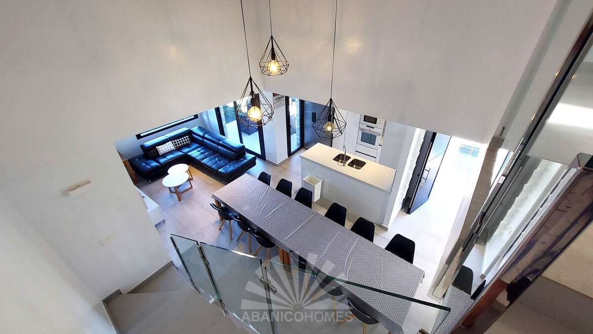 Toda la villa es muy luminosa, está construida con materiales de alta calidad, puertas de aluminio con climalit y cristales dobles con puente térmico e insonorizadas, aire acondicionado frio/calor central en toda la casa, conexión wifi y alarma de seguridad.